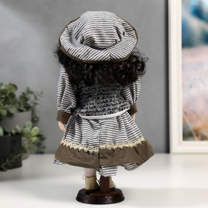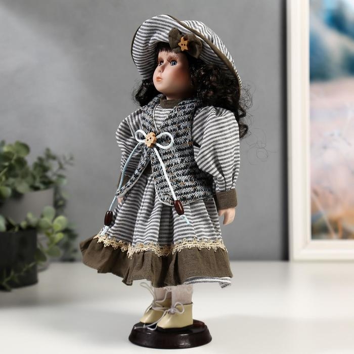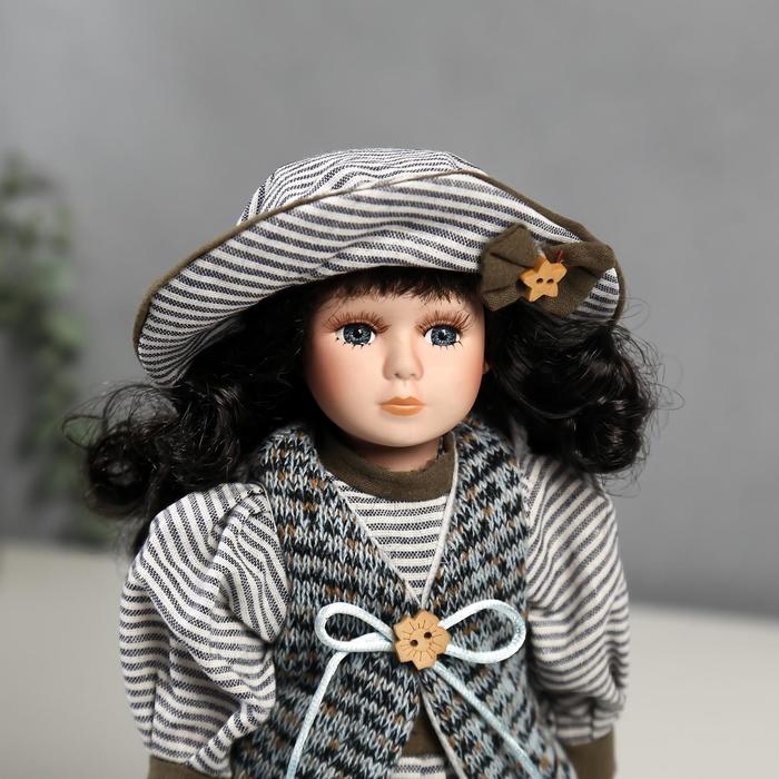 Кукла коллекционная керамика "Валя в платье в полоску и вязаном жилете" 30 см
