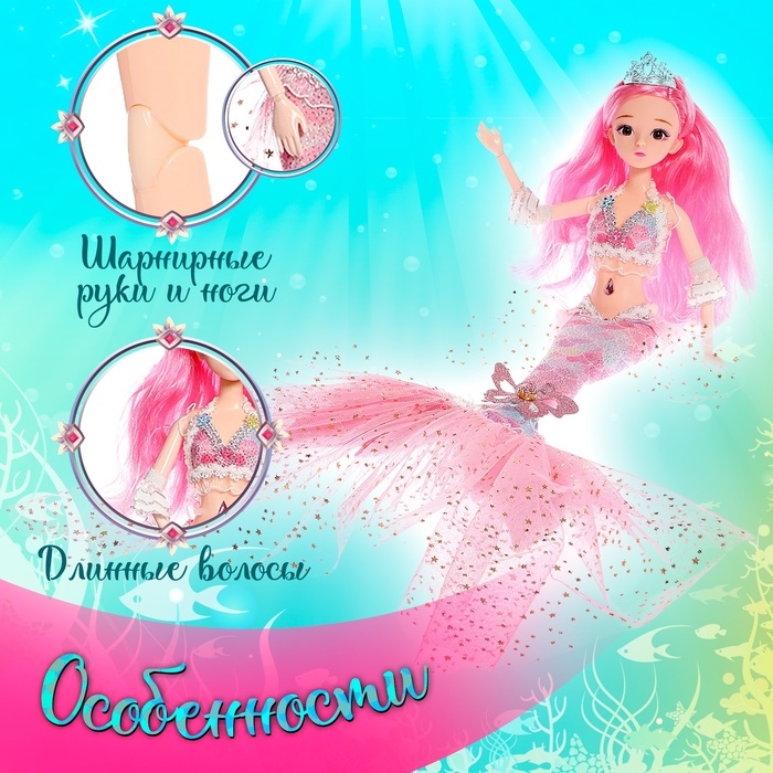 Кукла сказочная «Волшебная русалочка», цвет розовый