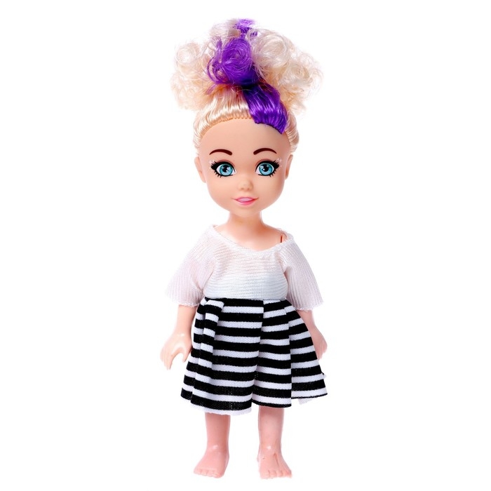 Кукле с длинными волосами можно сделать красивую причёску. В наборе есть кошелек, в котором малышка будет хранить нужные вещи. Его можно использовать как косметичку. Высота куколки — 15 см.