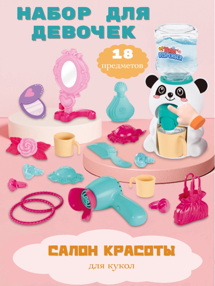 Этот мини-кулер идеально подходит для ролевых игр, где кукол можно угостить освежающим напитком после долгого дня в салоне красоты. Кулер выполнен в форме панды и станет отличным дополнением к игровому процессу.