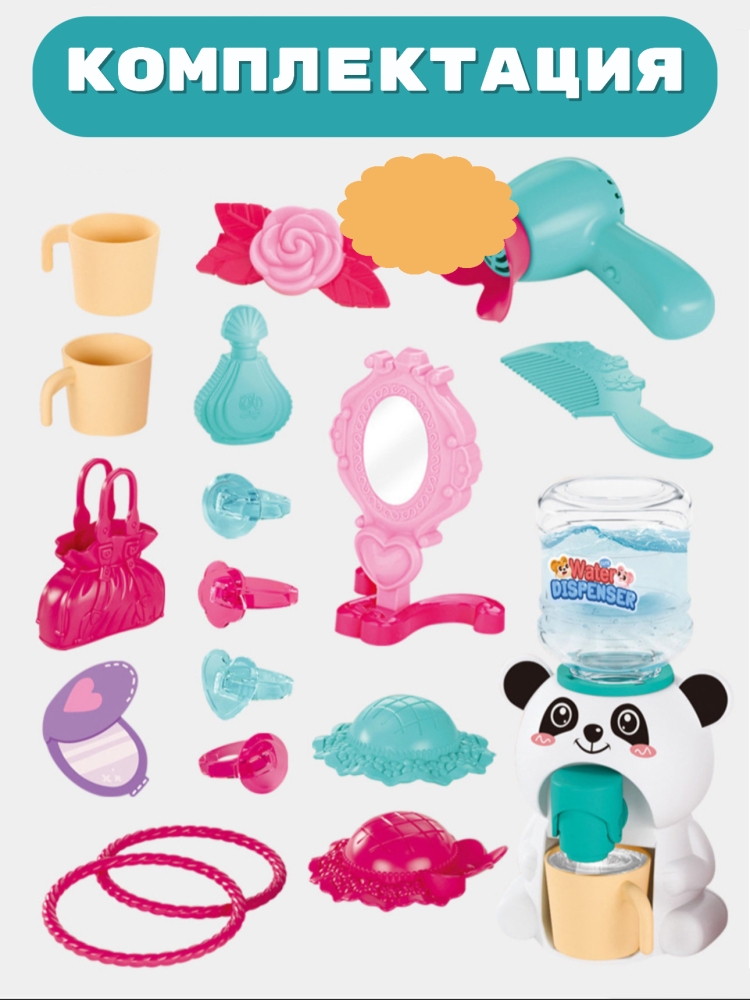 Чтобы сделать игру ещё более реалистичной и интересной, мы добавили детский кулер для воды. Этот мини-кулер не только выглядит стильно, но и идеально подходит для ролевых игр, где кукол можно угостить освежающим напитком после долгого дня в салоне красоты. Кулер выполнен в форме панды и станет отличным дополнением к игровому процессу.