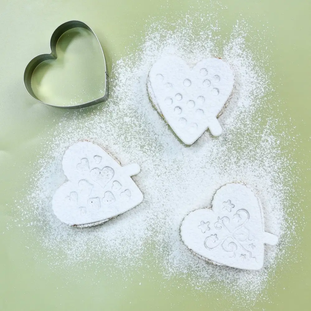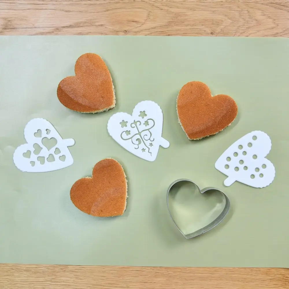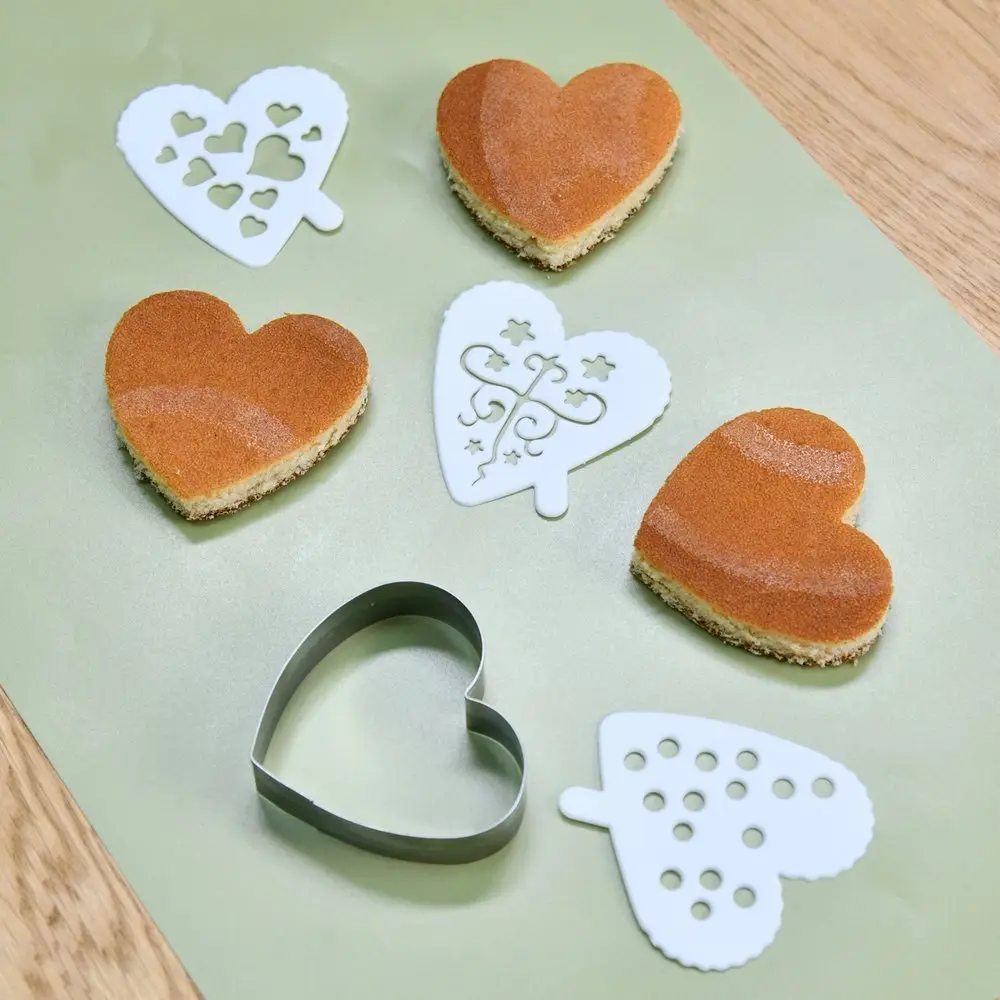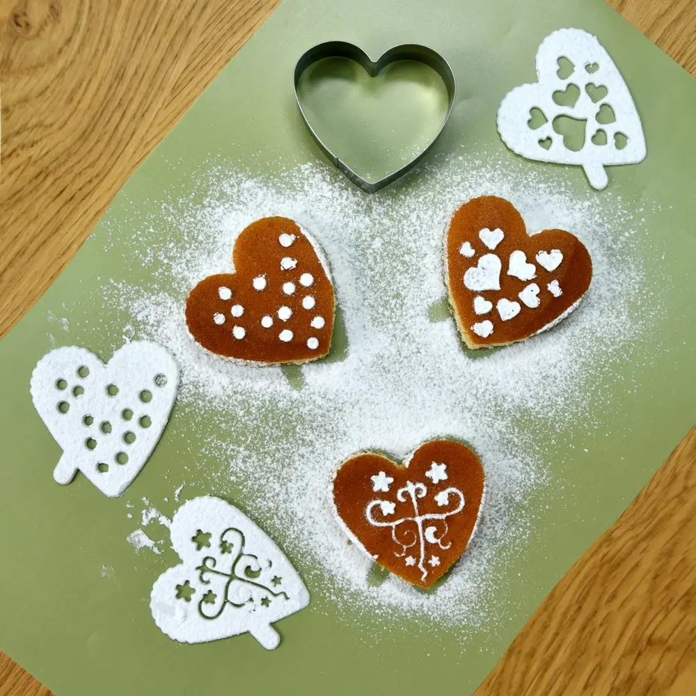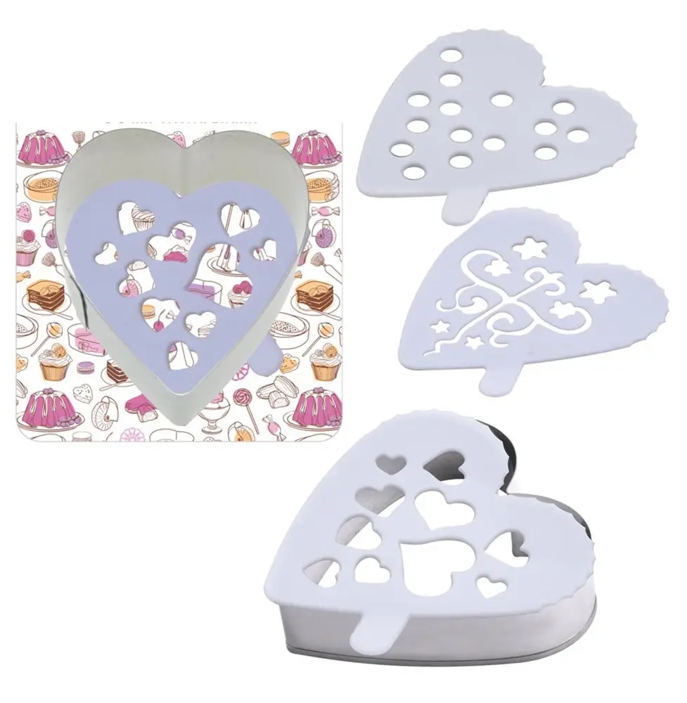 Готовьте удивительные десерты с кулинарной формой «Сердце». Трафарет в комплекте поможет украсить пирожное удивительными рисунками. Используйте форму не только для десертов, но и для выкладки порционных салатов и их оформления. Так как изделие изготовлено из нержавеющей стали, его можно использовать для порционного тушения и жарки яичницы в виде сердца. Форма может также использоваться для вырезания теста для выпекания печенья. В комплекте три трафарета, через которые можно насыпать корицу, сахарную пудру или какао. Они выполнены из полипропилена, предназначены для многоразового использования. Размеры изделия 8х7,5х2,5 см. После использования промойте губкой с жидкими моющими средствами.