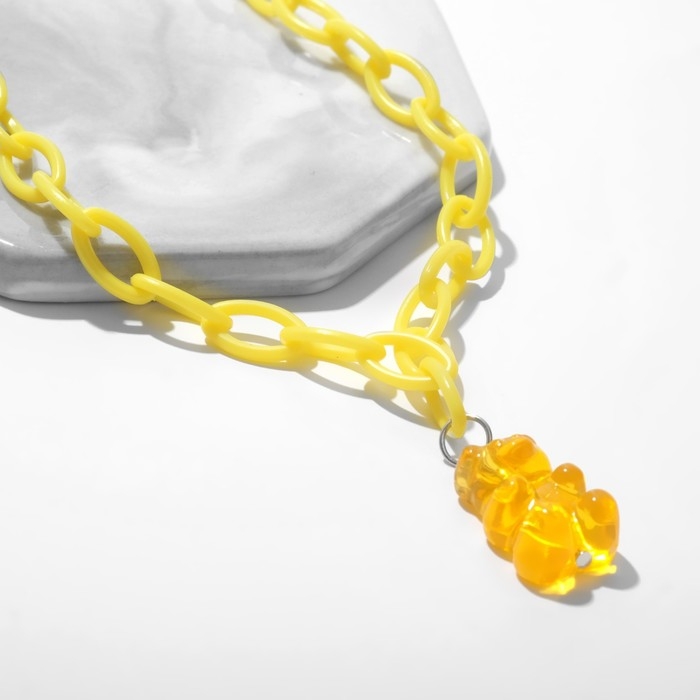 Кулон «Мишка» мармеладный, цвет жёлтый, 40 см