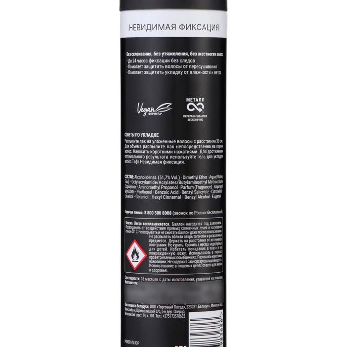 Лак для волос Тафт Power «Невидимая фиксация», мегафиксация, 225 мл