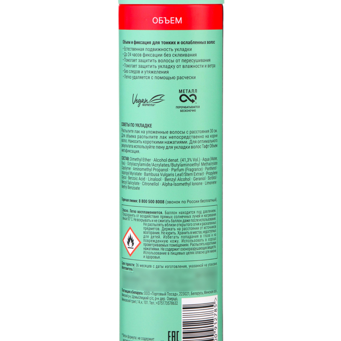 Лак для волос Тафт «Воздушный объём», мегафиксация, 225 мл