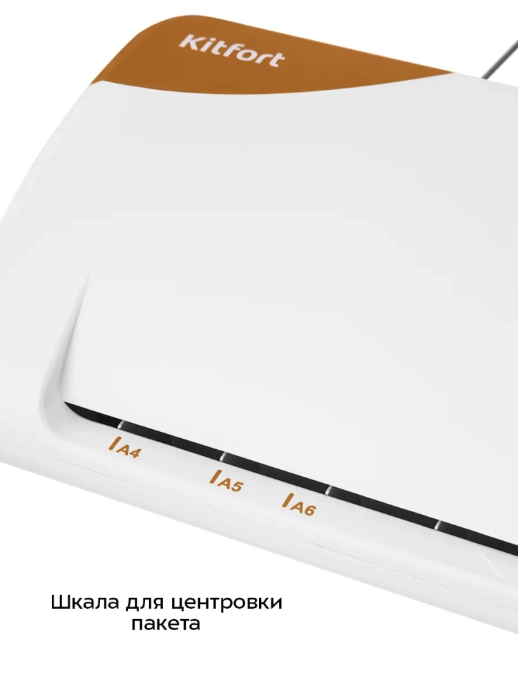Ламинатор Kitfort КТ-6502 — устройство для ламинирования листов обычной бумаги и фотобумаги. Данная модель является ламинатором пакетного типа, т.е. в качестве ламинирующего материала используется готовый пакет — два листа ламинационной пленки толщиной 60–125 мкм, спаянные с одной стороны. Для работы с ламинатором подходят пакеты, размер которых не превышает формат А4.