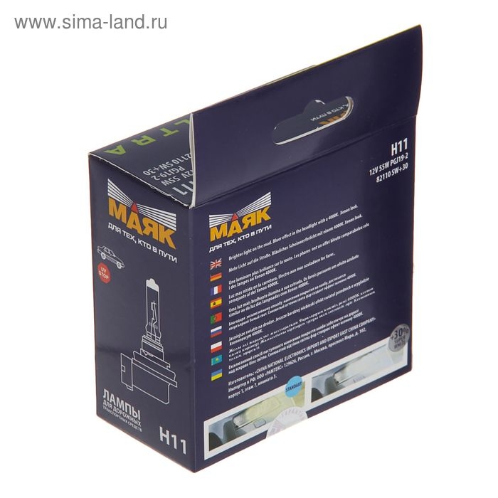 Лампа автомобильная Маяк УЛЬТРА, +30%, H11, 12 В, 55 Вт, набор 2 шт