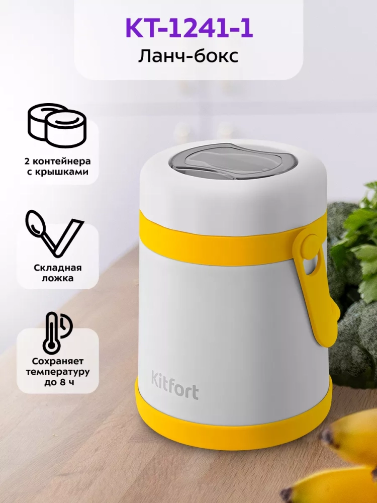 Благодаря ланч-боксу Kitfort KT-1241 вы можете взять еду с собой, куда бы вы ни собирались. Конструкция ланч-бокса помогает сохранять температуру и вкус ваших блюд, которые вы берете с собой в дорогу и на пикник, на работу и в школу. Ланч-бокс может сохранять температуру содержимого до 8 часов.