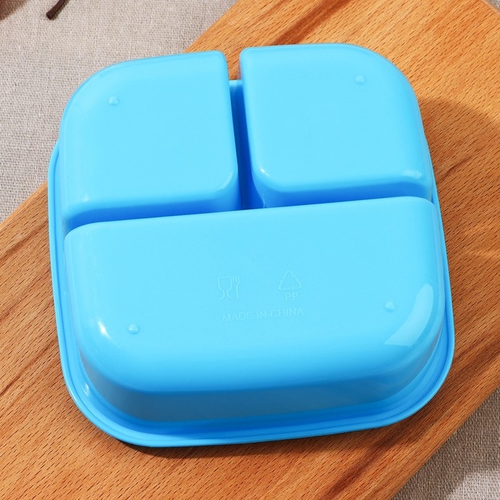 Данный прямоугольный ланч-бокс обладает объемом в 400 мл. Три секции позволяют удобно размещать различные виды пищи, сохраняя их свежесть и вкус.