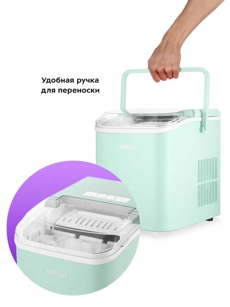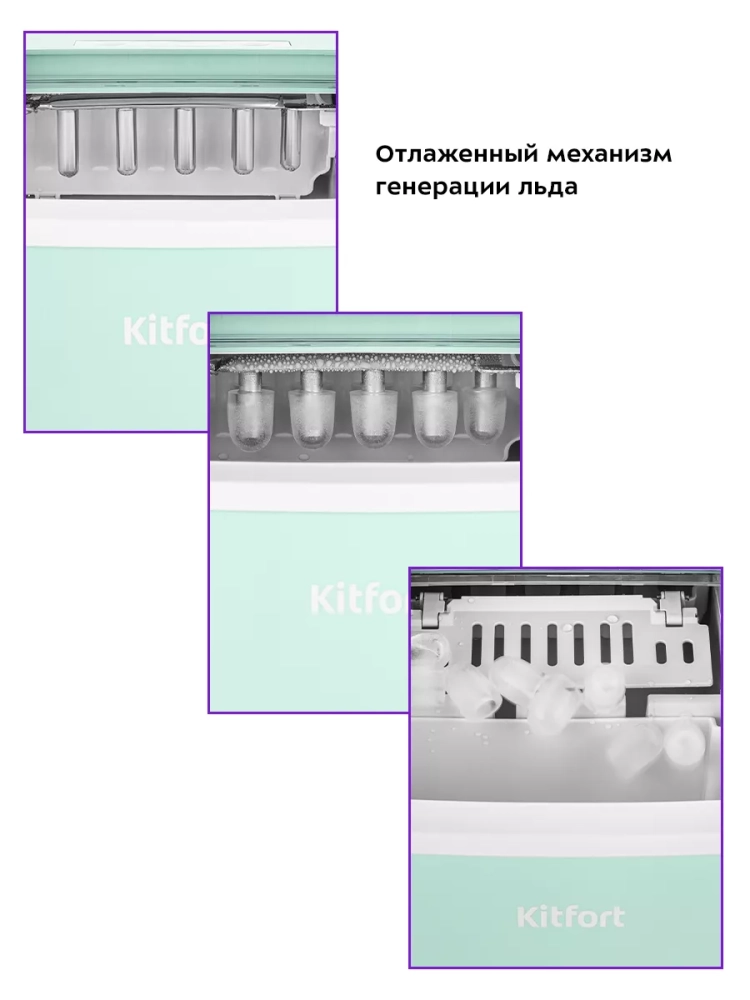 Функция автоматической очистки упрощает уход за устройством, делая его использование максимально комфортным. Льдогенератор Kitfort — это надежная техника для дома, которая экономит время и пространство в морозилке, освобождая место для других продуктов. Он идеально подходит для использования на кухне, в домике на даче или в небольшом баре, обеспечивая быстрый доступ к свежему льду в любое время.