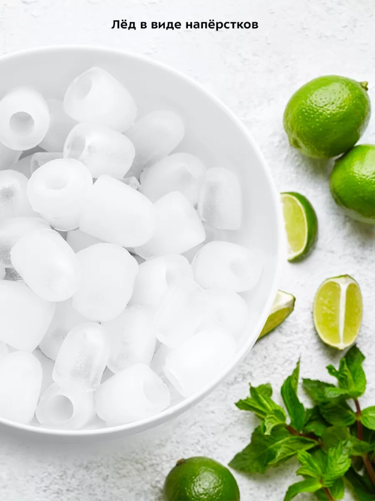 Льдогенератор для дома мощностью 100 Вт и объемом резервуара 1.5 л — это идеальное решение для кухни, дачи или небольшого бара. Этот мини прибор быстро и эффективно производит лед, что делает его незаменимым для охлаждения напитков и приготовления коктейлей. Время генерации одной порции льда составляет всего 7–8 минут, что значительно быстрее, чем в обычной морозилке. Лед формируется в виде цилиндров с углублением, что обеспечивает максимальную поверхность теплообмена и идеально подходит для лонг-дринков и других напитков.