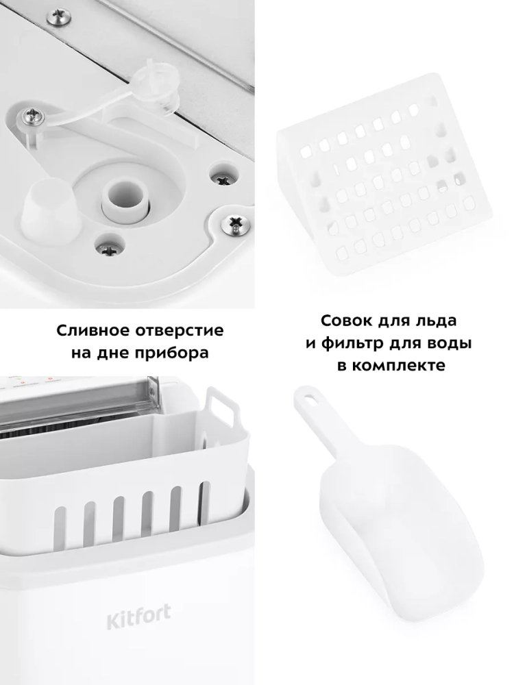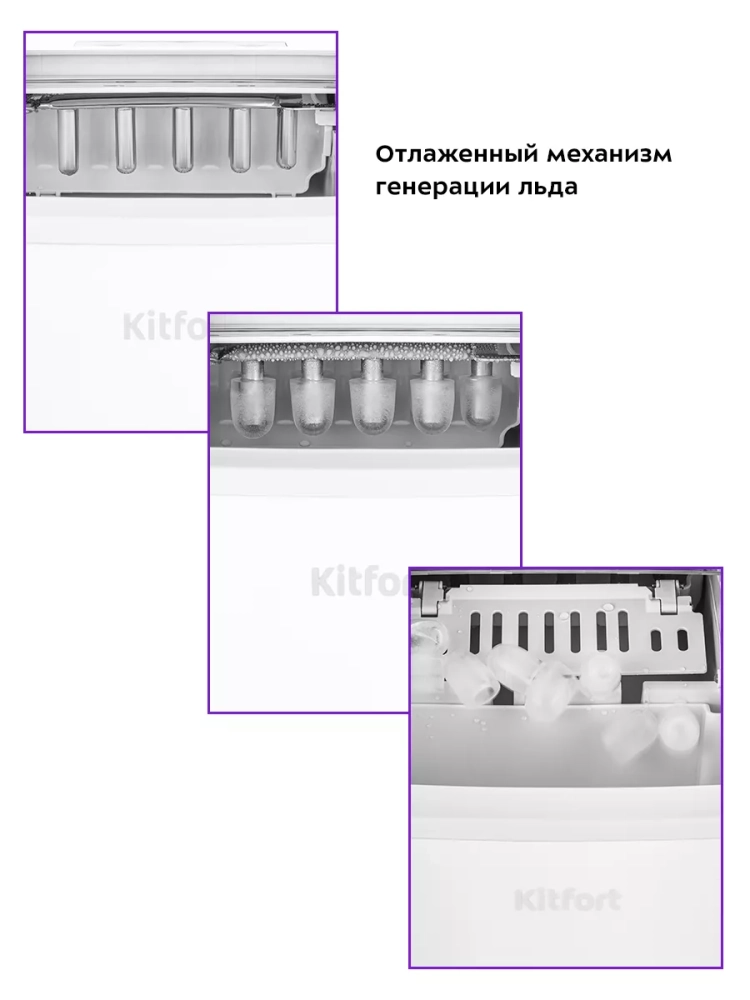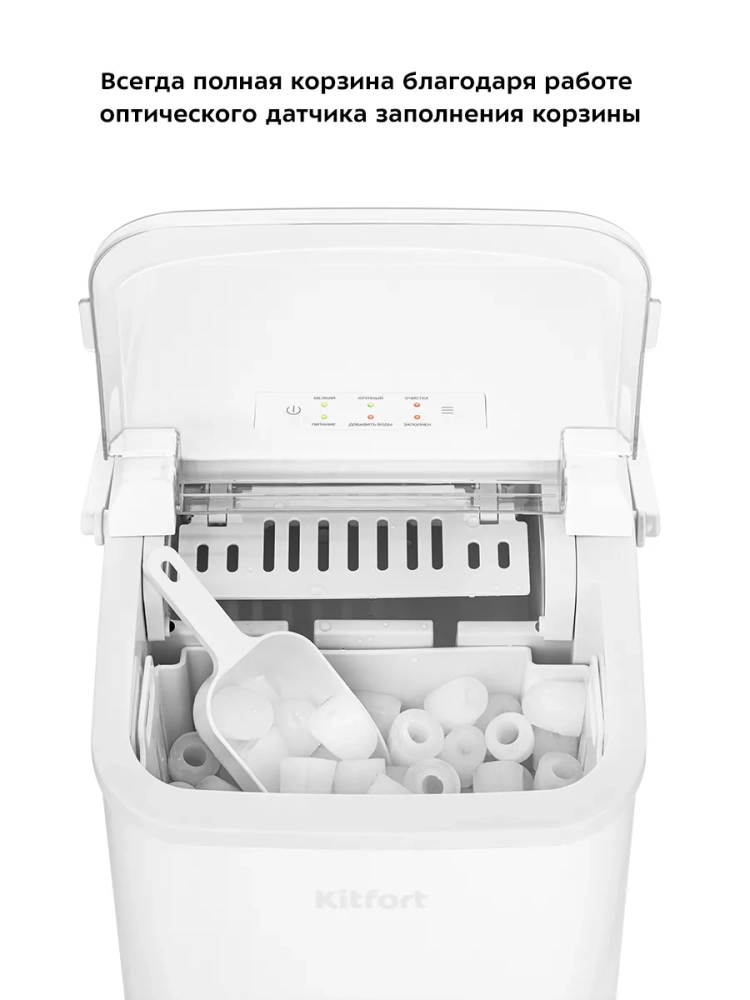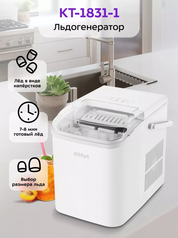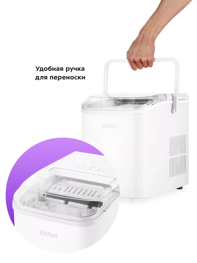 Функция автоматической очистки упрощает уход за устройством, делая его использование максимально комфортным. Льдогенератор Kitfort — это надежная техника для дома, которая экономит время и пространство в морозилке, освобождая место для других продуктов. Он идеально подходит для использования на кухне, в домике на даче или в небольшом баре, обеспечивая быстрый доступ к свежему льду в любое время.