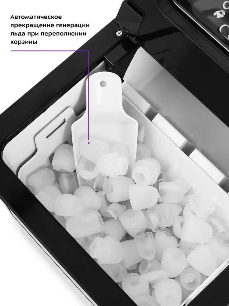 Благодаря своей компактности, этот ледогенератор легко помещается в маленькие кухни и домики, не требуя много места. Он идеально подходит для тех, кто хочет всегда иметь под рукой свежий лед для напитков, не загромождая морозилку или холодильник. Этот прибор станет вашим надежным помощником в создании прохладительных напитков и коктейлей, обеспечивая вас льдом в любое время.