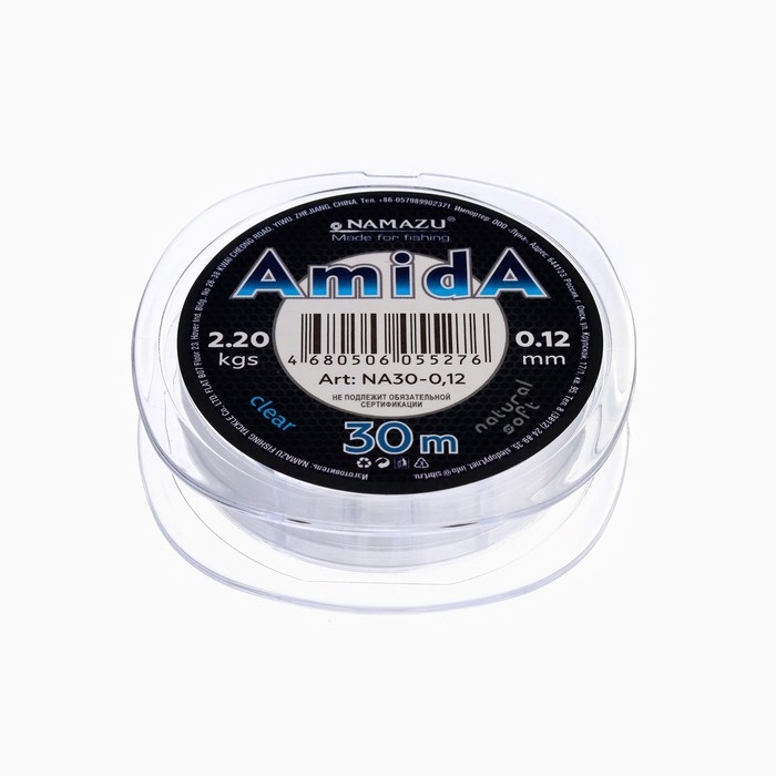 Леска Naмazu Aмida, диаметр 0.12 мм, тест 2.2 кг, 30 м, прозрачная, 1 шт.