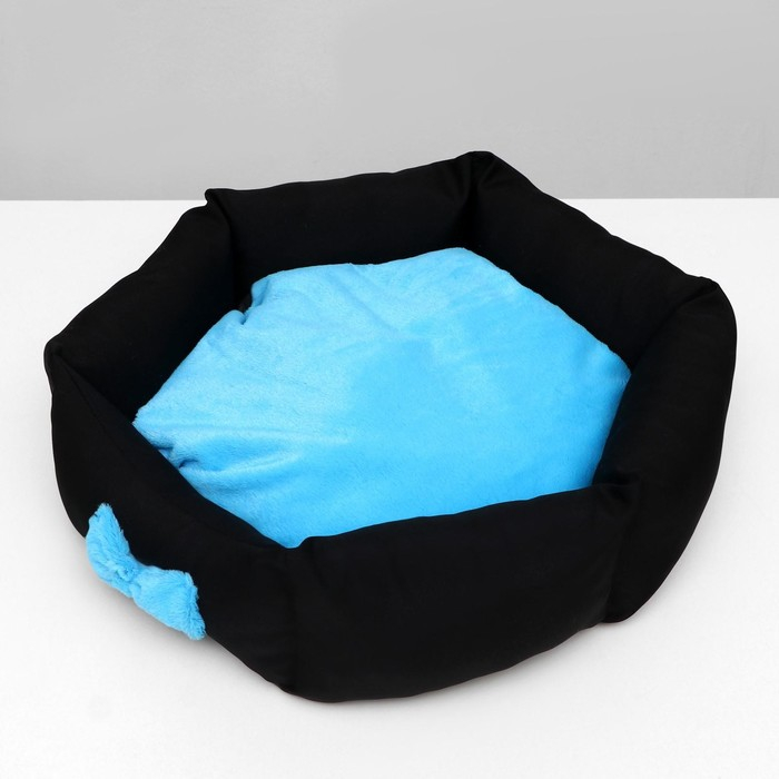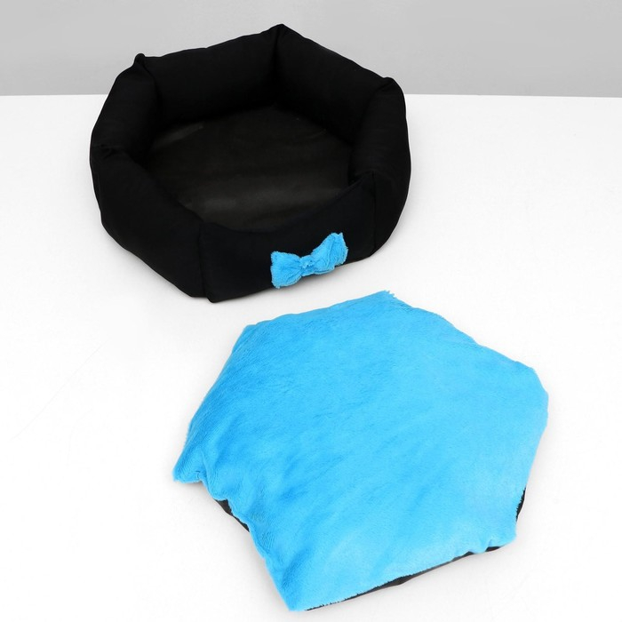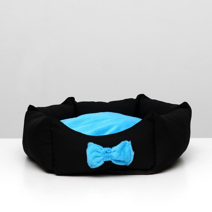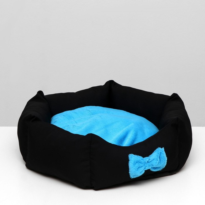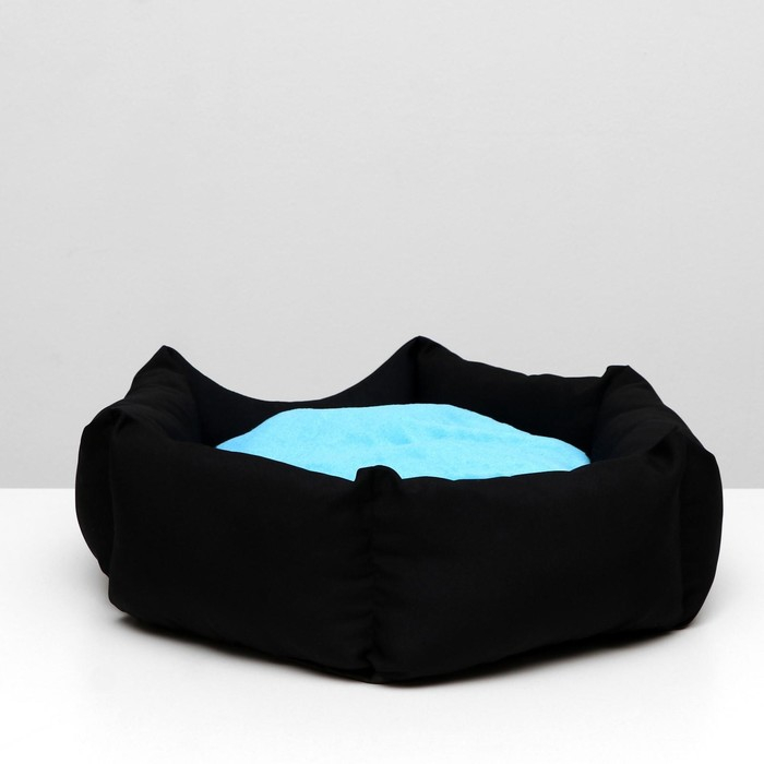 Лежанка "Принцесса", габардин, плюш, 50 х 50 х 15 см, чёрная/голубая