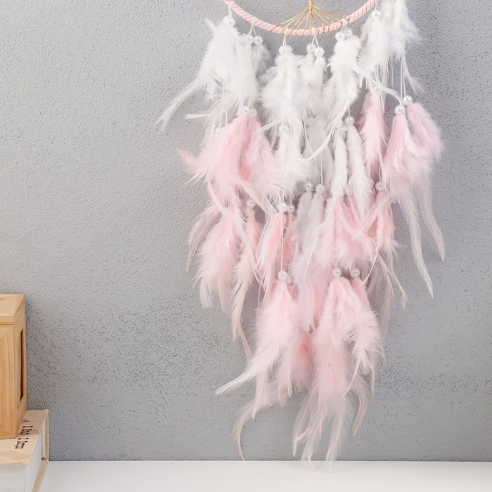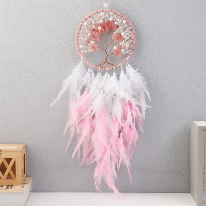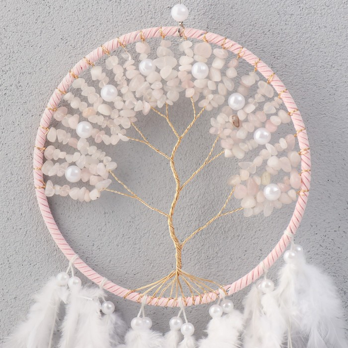 Ловец снов "Дерево с жемчугом" бело-розовый d=16 см 65х16 см МИКС