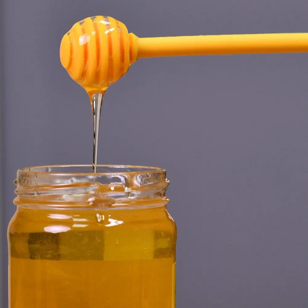 Поскольку правильный мёд не капает, а тянется, обычная ложечка здесь не уместна! Ложечка для меда — необходимый аксессуар, с ее помощью можно зачерпнуть жидкий мед, при это сохранив поверхность стола и края банки чистыми. Ложка представляет собой палочку из силикона, на одном конце которой утолщение с горизонтальными углублениями, похожее на веретено. На другом конце — удобный мини-шпатель, с помощью которого вы сможете равномерно распределить тягучий десерт по булке, хлебу или другой поверхности. Ложка удобна в использовании: опустите ее в банку, накрутите струйку меда и перенесите, понемногу поворачивая, затем поднесите к кусочку булки и «размотайте» прямо на нее. В процессе использования может исчезнуть яркость цвета, но не влияет на качество изделия. Можно мыть в посудомоечной машине.
