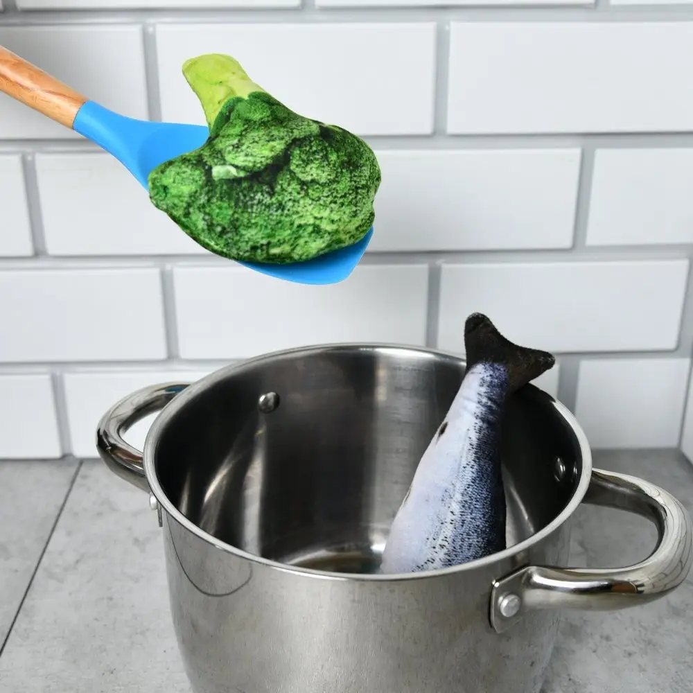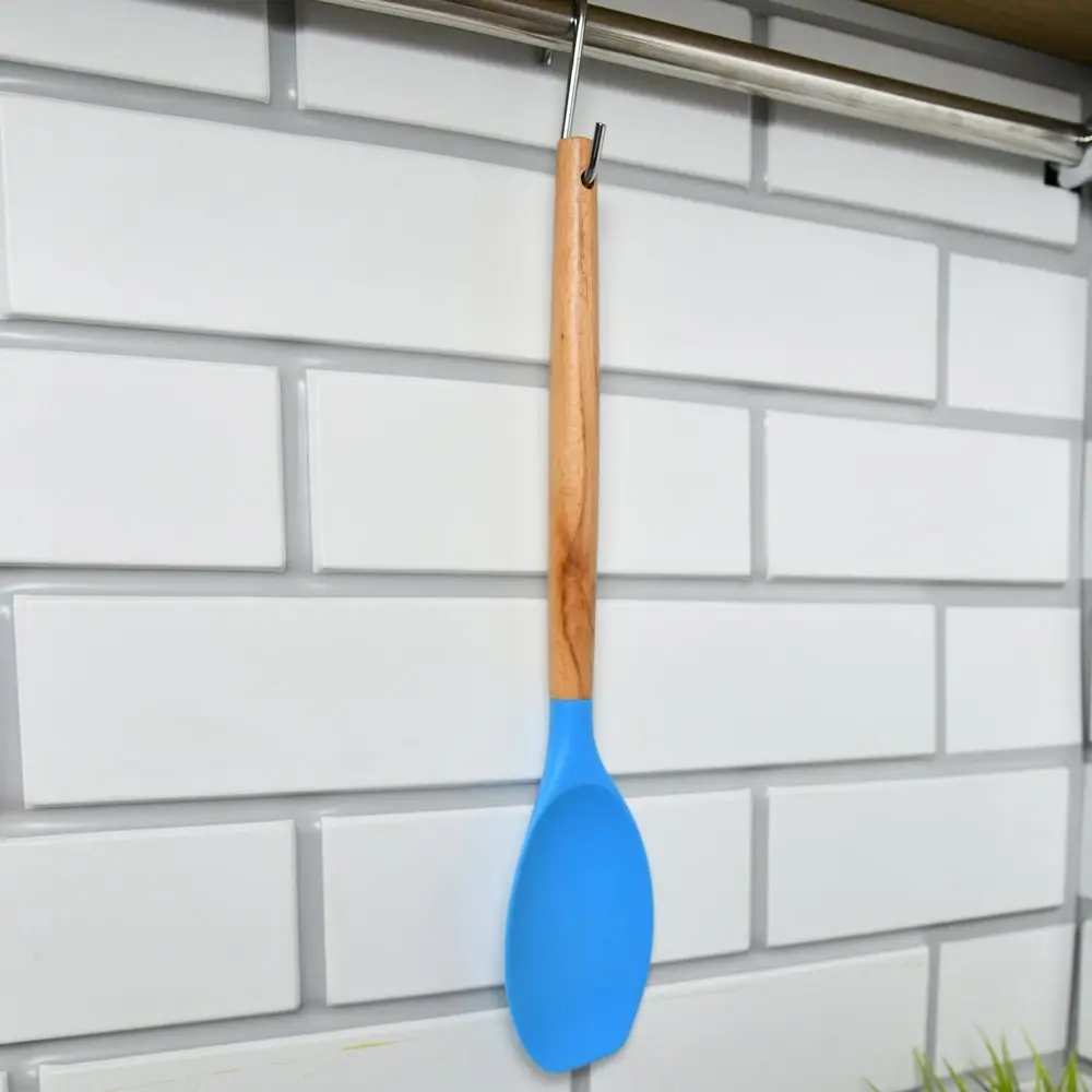Изготовлено: рабочая часть из силикона, ручка из дерева. Общая длина 31см.