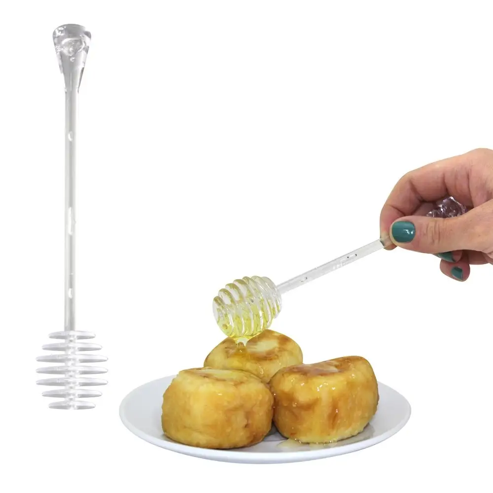 Ложка для меда имеет форму спирали с глубокими прорезями. В чем заключается принцип использования ложки в форме веретена? Ложечку нужно опустить в банку с медом и начать закручивать, мед попадает в прорези и задерживается в них. Чтобы перенести вязкую сладость и ничего не запачкать, нужно продолжать крутить ложечку в одном направлении. Как только вы останавливаете движение, струйки меда начнут тихонько стекать. Не нужно ничего намазывать и касаться продуктов и затем опускать в банку ложку с хлебными крошками.