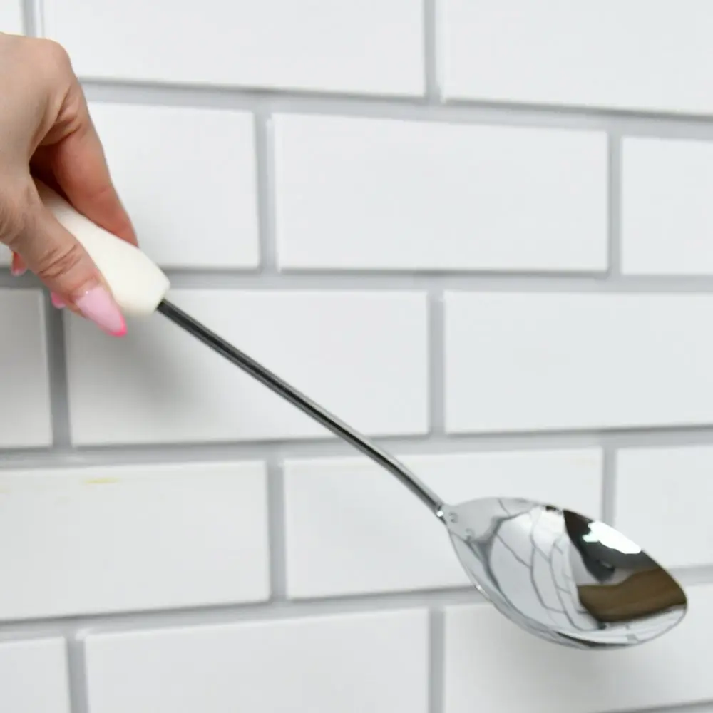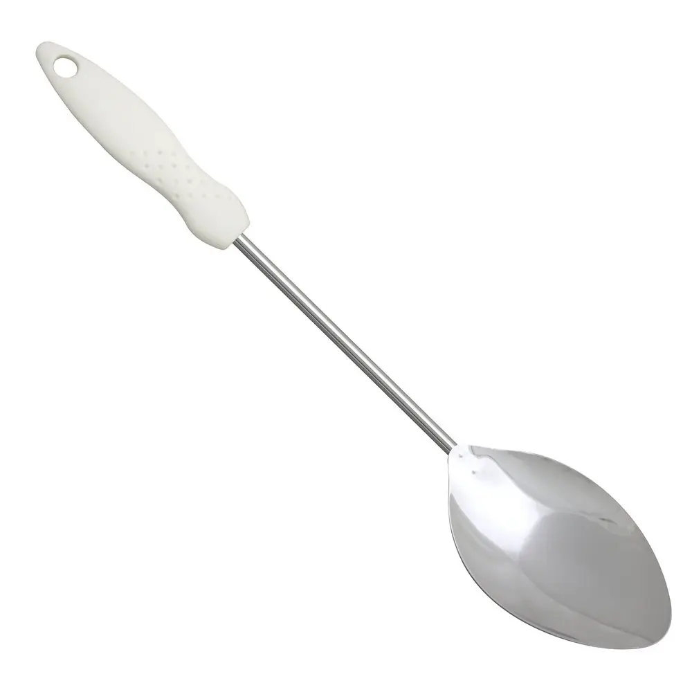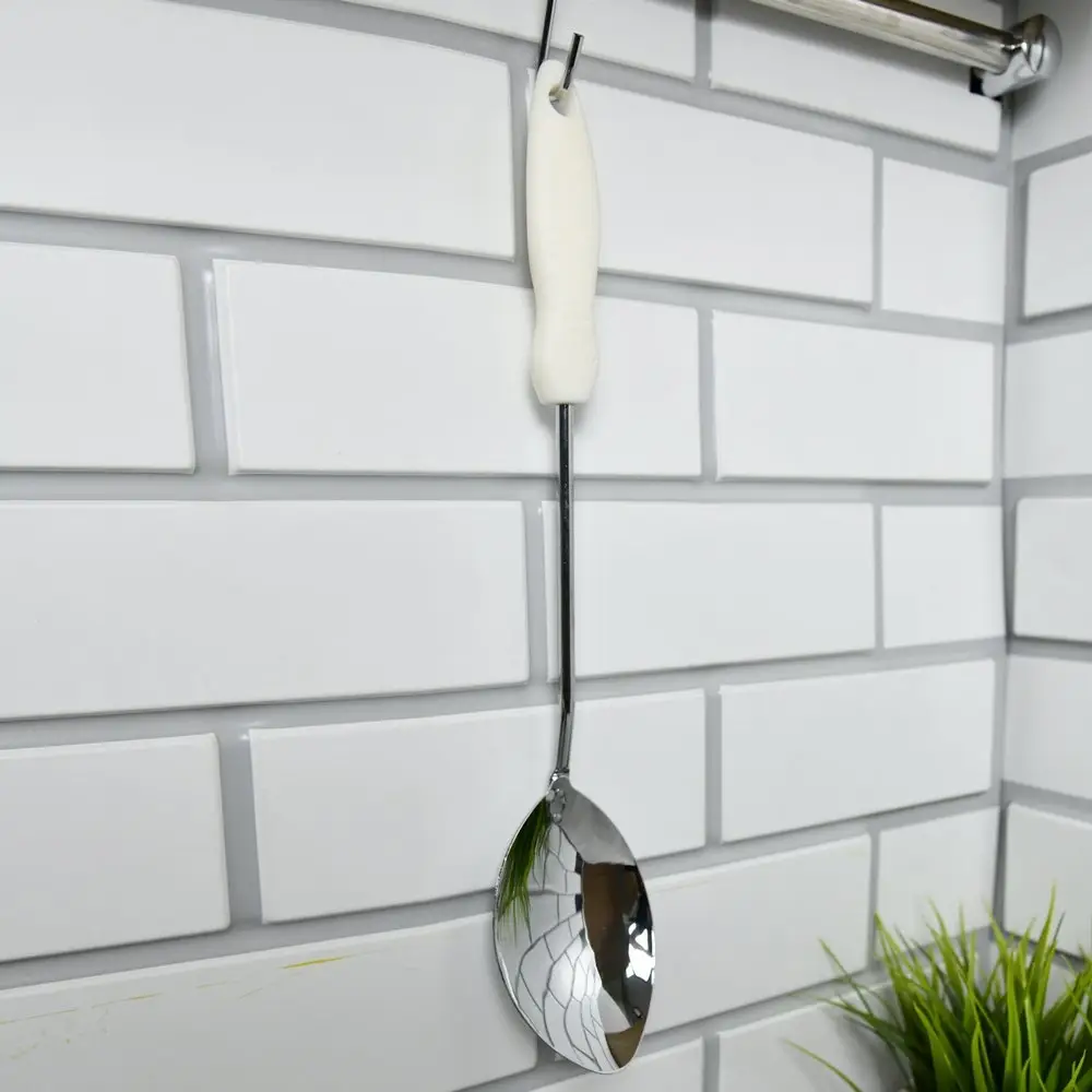 Удобная ложка «Порто» — незаменимый помощник в приготовлении блюд: супов, овощных смесей, грибов, морсов, компотов, пюре, каш. Подходит для перемешивания, раскладывания по порциям. Рабочая часть изготовлена из хромированной стали, ручка из пластмассы. Пластмассовая ручка не нагревается во время приготовления пищи. После использования вымойте с жидкими моющими средствами.