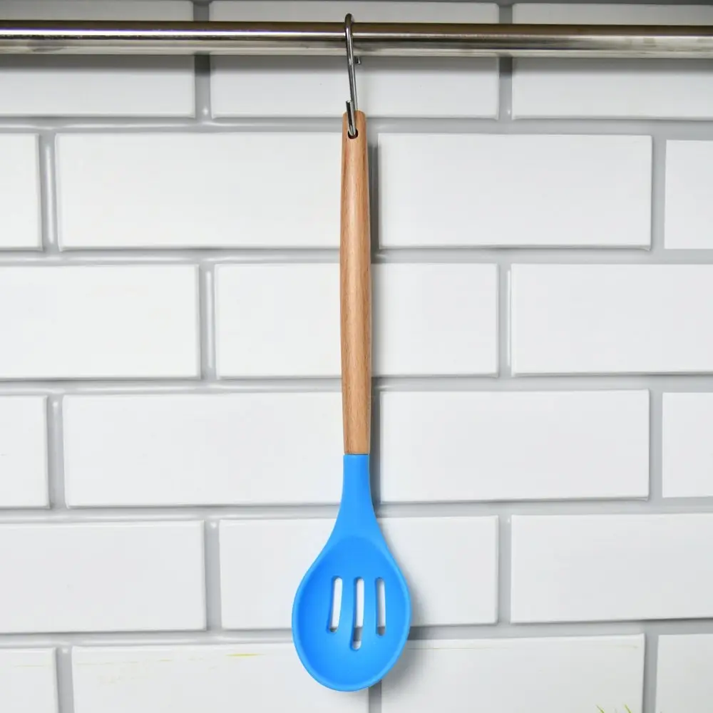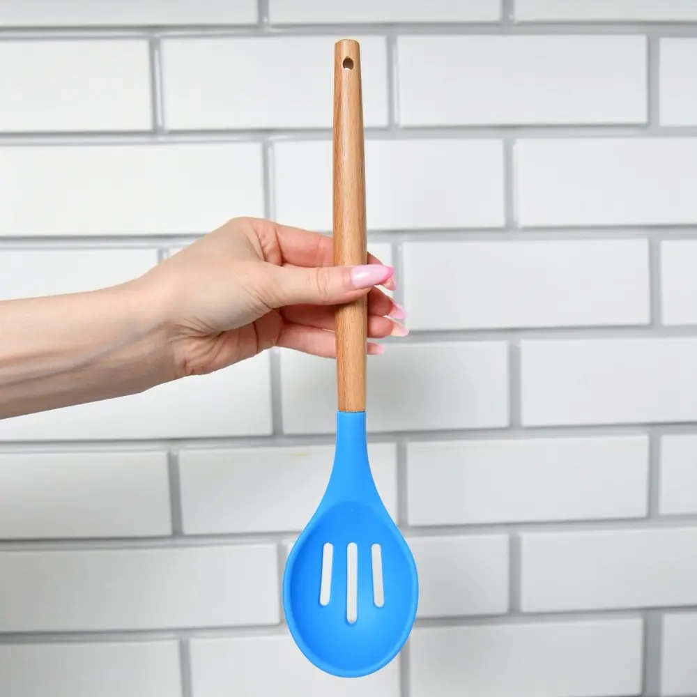 Изготовлено: рабочая часть из силикона, ручка из дерева. Общая длина 31см.