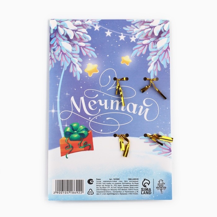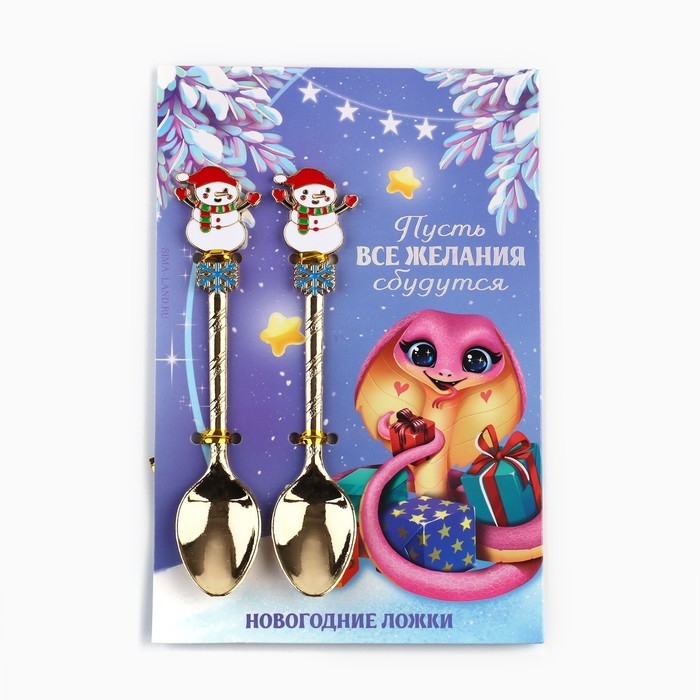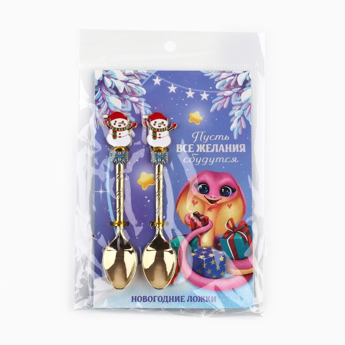 Ложки новогодние чайные с формовой ручкой «Новый год: Все желания сбудутся», 11 х 3 см