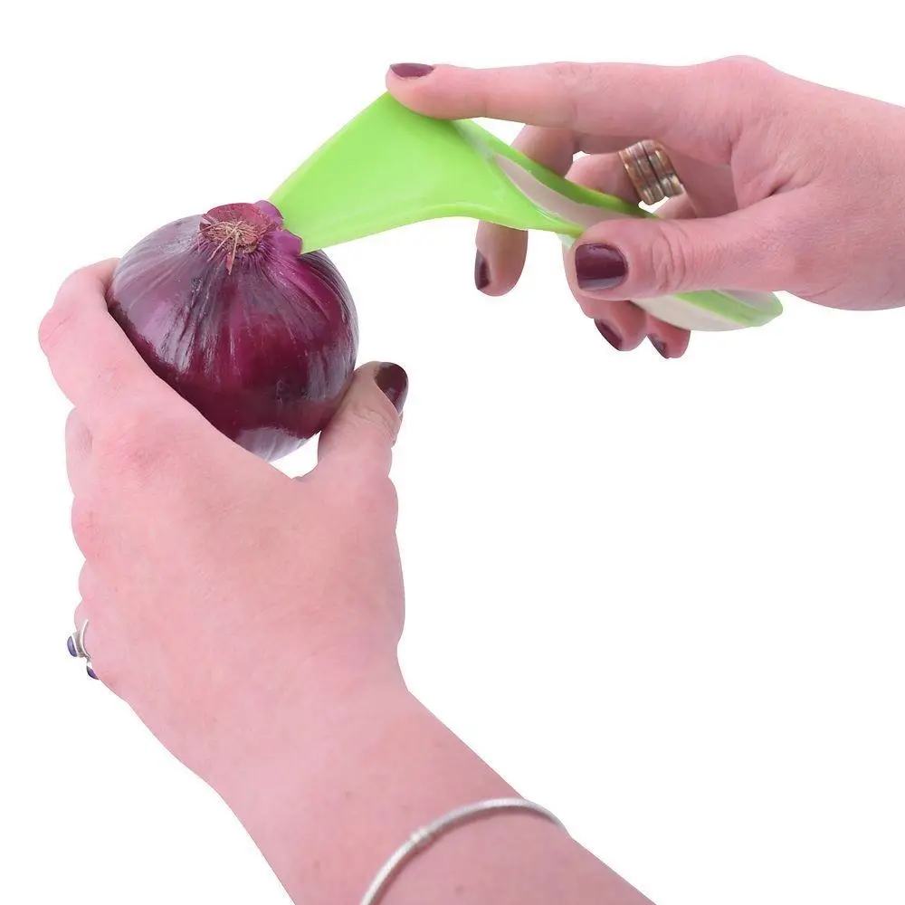 Проста в использовании: вставьте острый конец лукорезки в луковицу, немного наклонив лукорезку от центра луковицы; прокрутите луковицу вокруг своей оси; достаньте вырезанную часть луковицы. В луковице у вас должна получиться «воронка». Теперь луковица готова к шинковке!