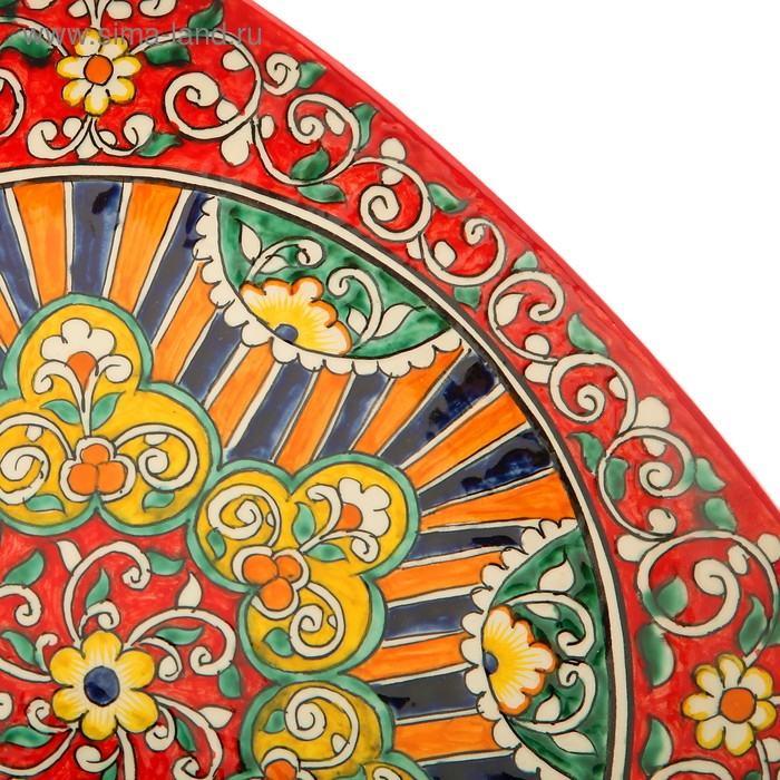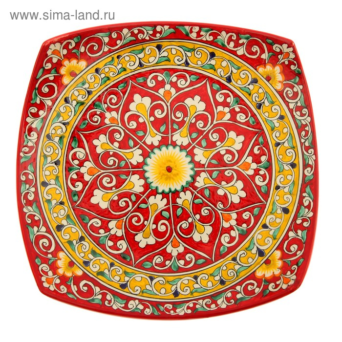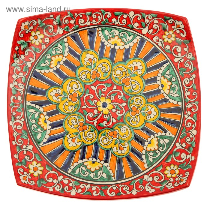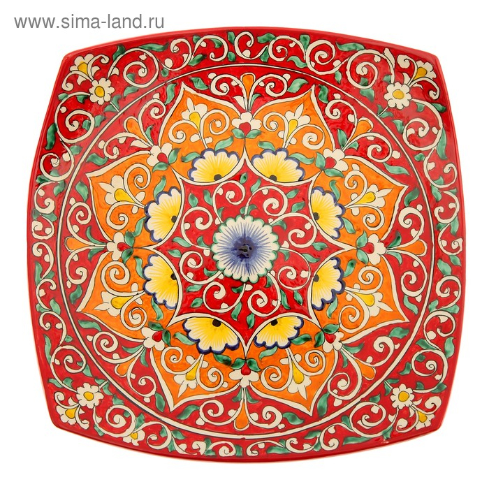 Ляган Риштанская Керамика "Узоры", 31 см, квадратный, красный микс