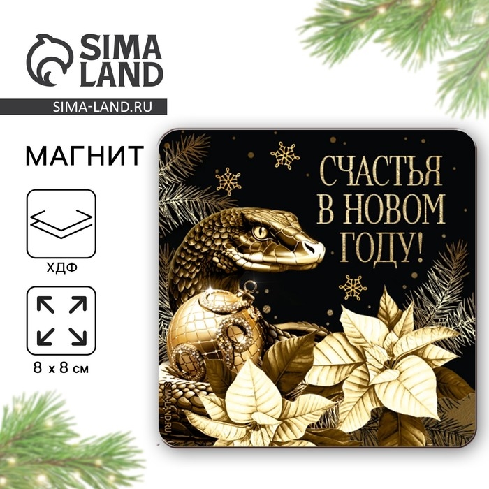 Магнит новогодний деревянный «Новый год: Счастья в новом году», 8 х 8 см