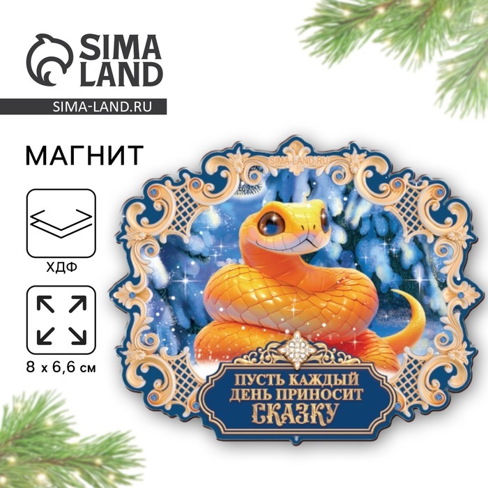 Магнит новогодний деревянный «Новый год: Сказка каждый день», 8 х 6.6 см