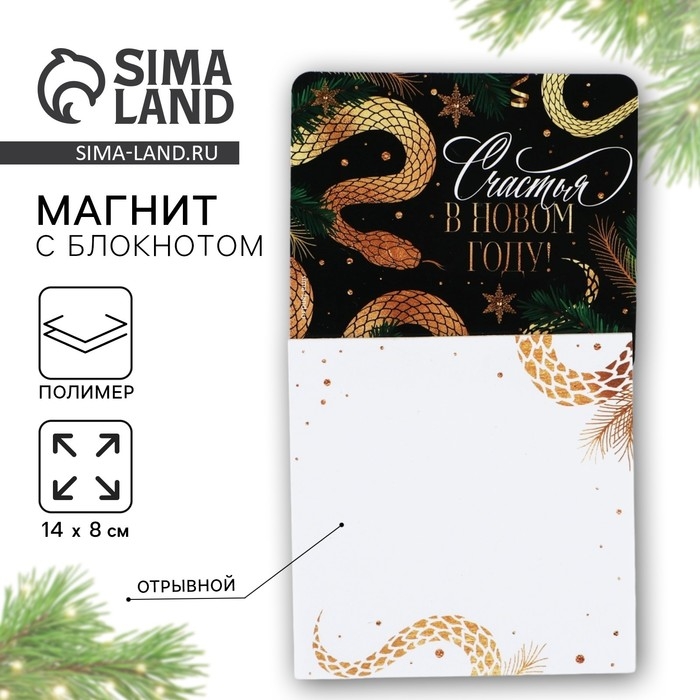 Магнит новогодний с блоком для записей «Новый год: Счастья в новом году«Новый год: , 8 х 14 см