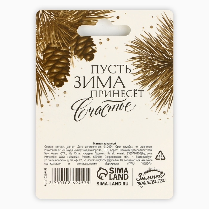 Магнит новогодний закатной «Новый год: Счастья в новом году», диам. 5 см