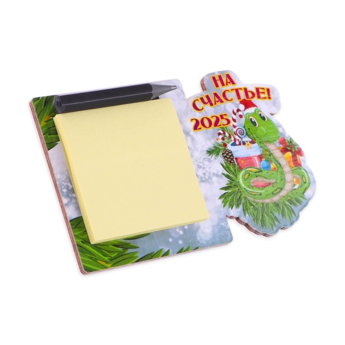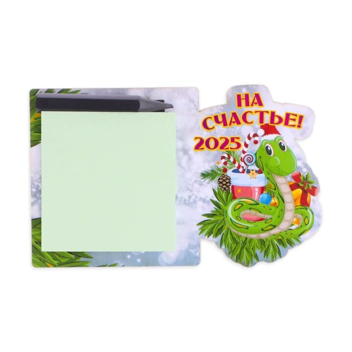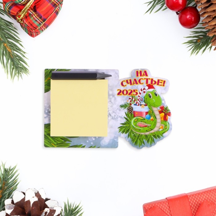 Магнит новогодний, змея, с блоком для записи "На счастье!" символ года, леденец