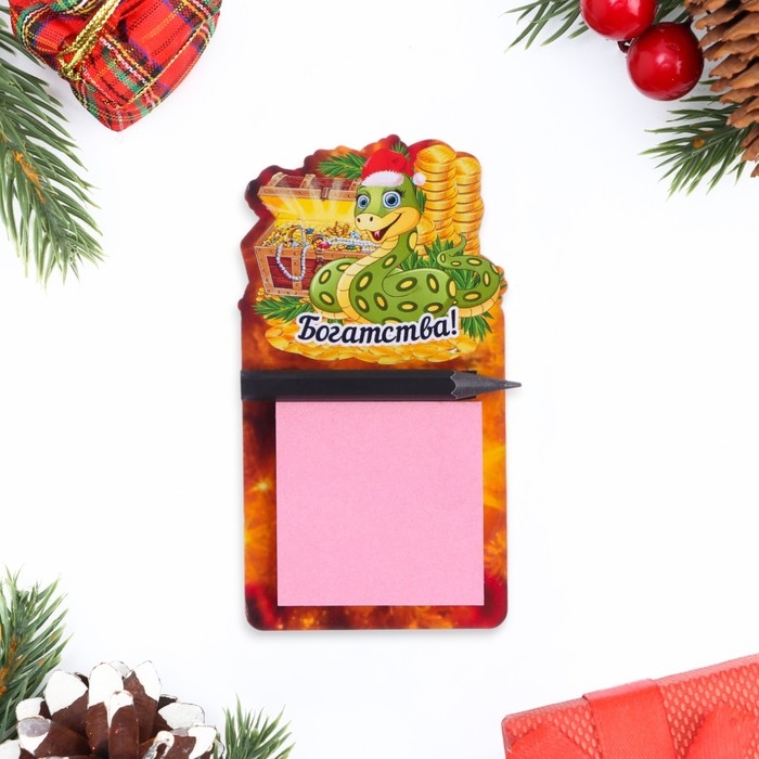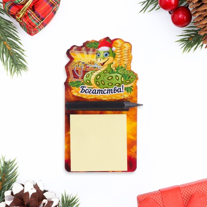 Магнит новогодний, змея, с блоком для записи "С Новым Годом!" символ года, сундук