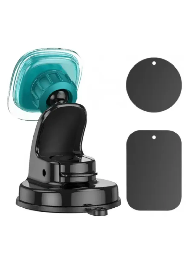 Магнитный держатель для телефона с креплением на приборную панель или лобовое стекло. Основание на двустороннем скотче, мощные магниты и металлические пластины обеспечивают надежную фиксацию. Поворотный механизм 360° для идеального угла обзора.