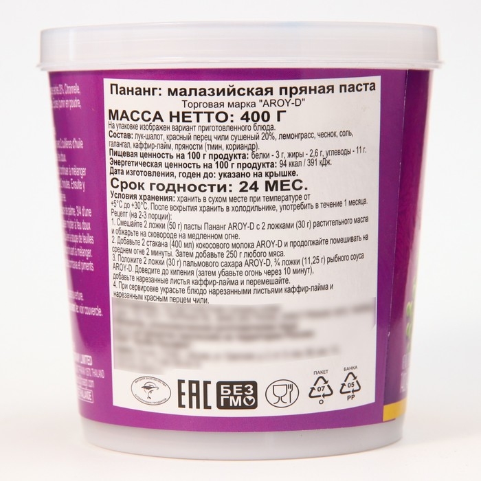 Panang Curry Paste от AROY-D отличается густой консистенцией и умеренной остротой. Паста обладает сладко-соленым ореховым вкусом. Идеально подходит для блюд из свинины, курицы, говядины, утки, рыбы и морепродуктов.