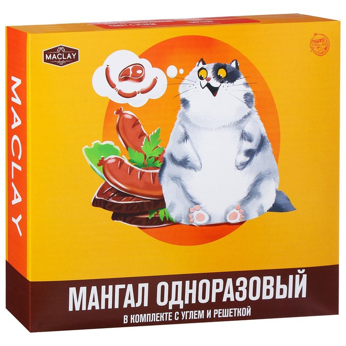 Мангал Maclay, одноразовый, 32х26х6 см, в комплекте: уголь, решётка «Сосиски»