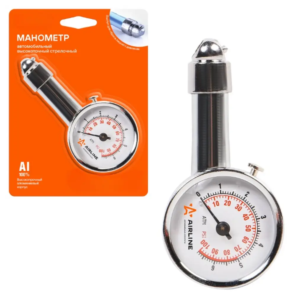Устройство для измерения давления в шинах автомобиля. Манометр имеет прочный металлический корпус с защитным хромовым покрытием.