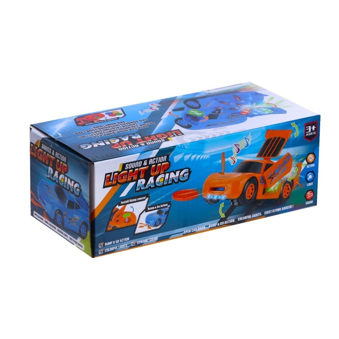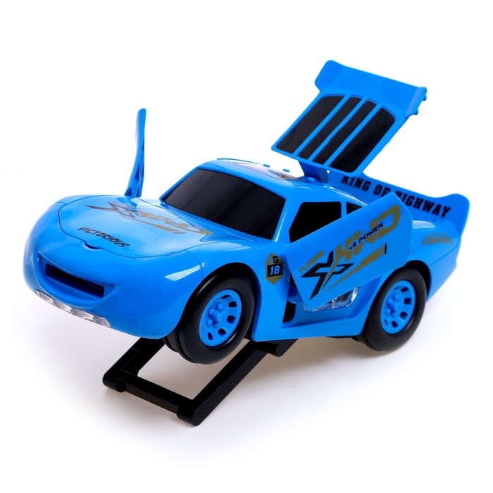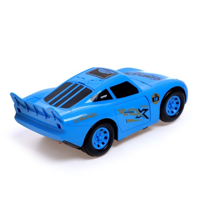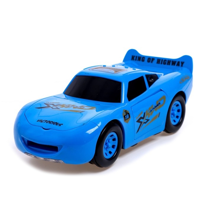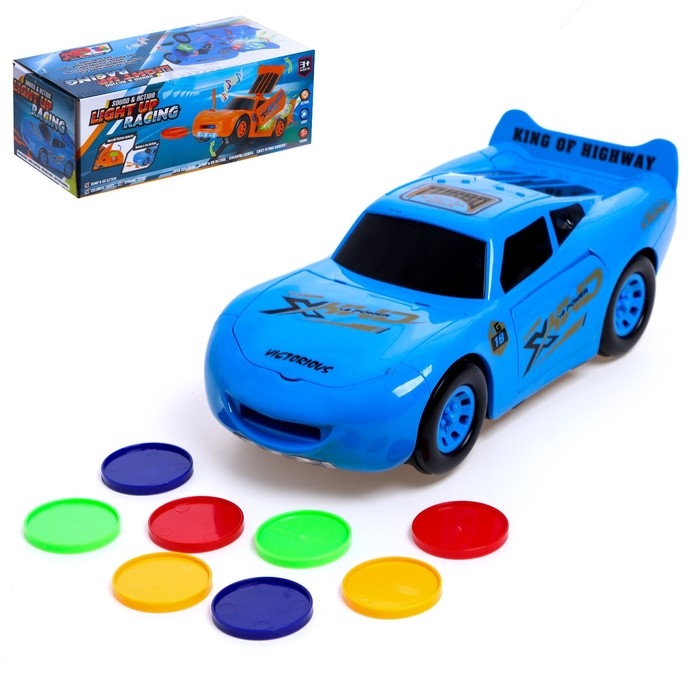 Машина «Тачка», работает от батареек, стреляет дисками, свет и звук, цвет синий