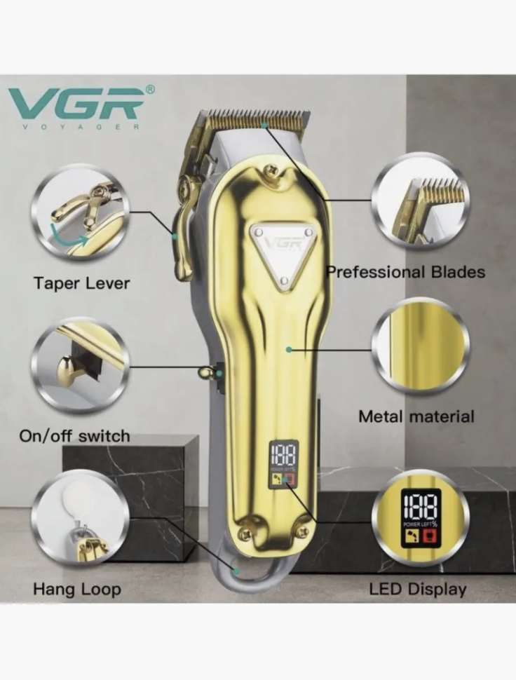 Профессиональная беспроводная машинка для стрижки волос VGR V-134. Профессиональная машинка для стрижки волос VGR V 134. Мощный роторный двигатель с увеличенным крутящим моментом. VGR V134 имеет профессиональные ножи из нержавеющей стали. Этот материал отличается высокой твердостью и долговечностью, что позволяет машинке справляться с самыми густыми и жесткими волосами. Машинка оснащена мощным аккумулятором и LED-дисплеем с индикатором регулируемой мощности и уровня заряда.