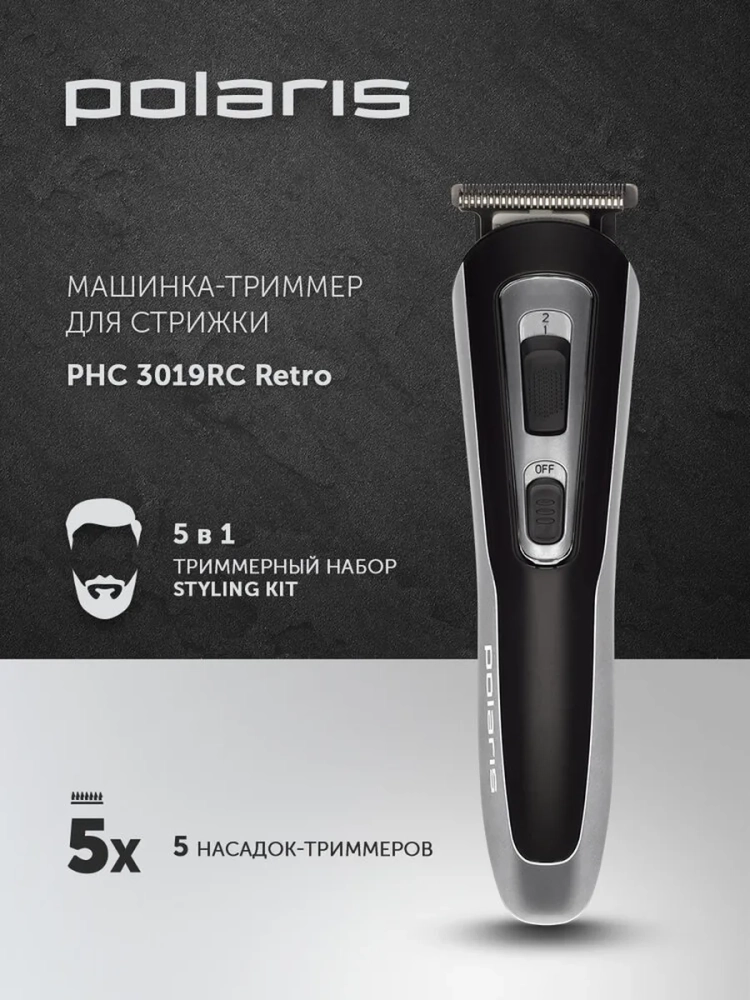 Машинка-триммер Polaris PHC 3019RC Retro 5в1 предназначена для тримминга, контуринга, дизайнерских стрижек, бритья, а также ухода за носом и ушами. Она справится с густыми волосами, жесткой щетиной и сложными контурами бороды и усов. Мощный литий-ионный аккумулятор обеспечивает до 120 минут автономной работы. Полная зарядка устройства занимает 90 минут. Прибор работает как от сети, так и от аккумулятора. Минимальная длина стрижки – 0,5 мм. В комплекте 12 насадок и лезвий: 3 лезвия-триммера из высококачественной нержавеющей стали (триммер 5 мм для фигурных и детальных стрижек, узкий триммер 20 мм для бороды и широкий триммер 38 мм для стрижки волос), насадка-триммер для удаления волос в носу и ушах, насадка-триммер для тела, триммер для тела (мини-бритва) с насадками 2 и 4 мм, 4 насадки для широкого триммера (3, 6, 9 и 12 мм) и телескопическая насадка 5-8 мм для узкого триммера. Сменные насадки для регулировки длины позволяют делать стрижки на любой вкус для всей семьи. Триммерный набор Polaris PHC 3019RC Retro ─ отличный подарок для папы, сына, мужа на Новый Год, день рождения, 23 февраля и другие праздники. Триммерный набор Polaris PHC 3019RC Retro станет настоящим помощником для всей семьи для ухода за волосами, бородой и усами. Создайте безупречный образ у себя дома с техникой для красоты и здоровья Polaris! Комплектация: • Машинка - триммер • Триммер узкий 30 мм для бороды • Триммер широкий 38 мм для стрижки волос • Триммер 5 мм для фигурных и детальных стрижек • Триммер для удаления волос в носу и ушах • Триммер для тела (мини-бритва) • Насадка на триммер для тела 2 мм • Насадка на триммер для тела 4 мм • Насадка на широкий триммер 3 мм • Насадка на широкий триммер 6 мм • Насадка на широкий триммер 9 мм • Насадка на широкий триммер 12 мм • Насадка телескопическая на узкий триммер 5-8 мм • Сумочка для хранения • Масло для смазки режущего блока • Щёточка для чистки • Зарядный шнур • Расческа • Инструкция с гарантийным талоном