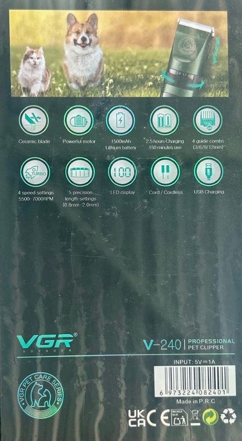Машинка для стрижки животных VGR V-240 Красная