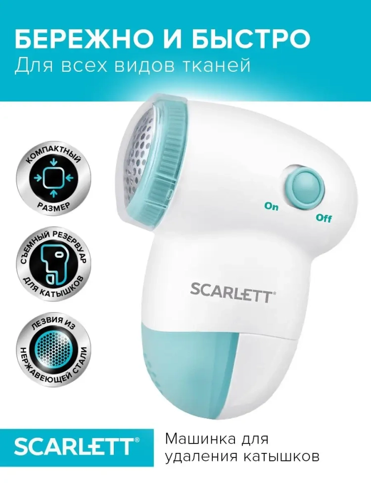 Машинка для стрижки катышков SCARLETT SC-920 - простой и эффективный способ ухаживать за одеждой и придавать ей свежий вид парой движений! Компактный прибор работает от двух батареек АА 1,5 В, оснащён защитной крышкой для лезвий и защитной металлической сеткой. Полупрозрачный резервуар для катышков облегчает задачу ухода и помогает избежать переполнения ёмкости. Щёточка для чистки лезвий идёт в комплекте!