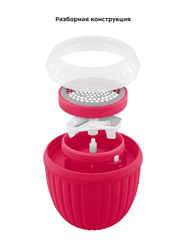 Принцип работы схож с электробритвой — защищенный металлической сеточкой блок ножей срезает комки ворса с поверхности ткани. Съемный блок ножей сделан из нержавеющей стали. Комки ворса попадают в контейнер, который надо периодически очищать. В комплекте идет щеточка, которая предназначена для очистки ножей и сумка для хранения и переноски устройства.