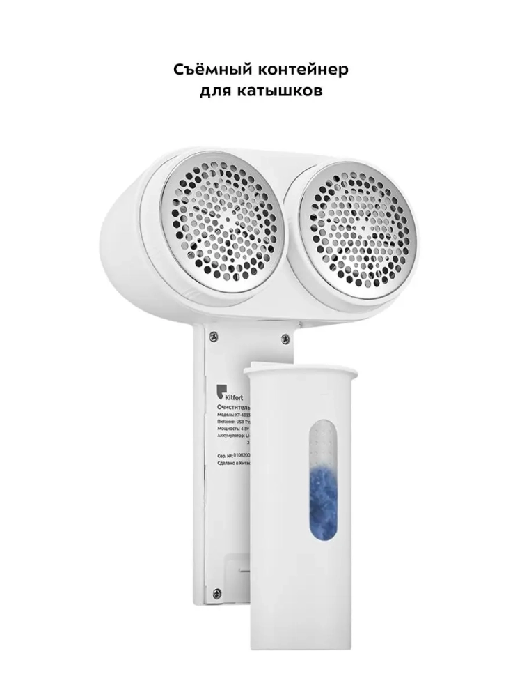 Очиститель катышков Kitfort KT-4013 вернет вашей одежде ухоженный вид, счистив с нее появившиеся катышки. Катышки появляются на одежде из-за неправильного ухода, частой и неправильной стирки, износа или из-за примеси полиэстера в тканях на одежде. Принцип работы схож с электробритвой — защищенный металлической сеточкой блок ножей срезает комки ворса с поверхности ткани. Съемные блоки ножей сделаны из нержавеющей стали. Комки ворса попадают в контейнеры, которые надо периодически очищать. В комплекте идет щеточка, которая предназначена для очистки ножей. Прибор работает от аккумулятора, поэтому его можно брать с собой в путешествия или на работу — он с легкостью поместится в маленькой сумке. Прибор небольшой и легкий по весу. Компактные размеры прибора избавляют от проблемы хранения устройства. Заряжается прибор быстро, а также его можно включать, когда он подключен к зарядке. Прибор можно использовать для любых тканей из хлопка, шерсти или льна. Две скорости работы удобны для работы с разными видами тканей. Два блока ножей захватывают большую площадь ткани, поэтому удаление катышков происходит быстрее и в два раза эффективнее.