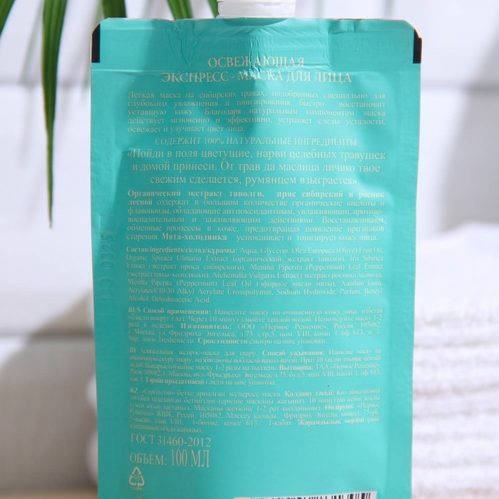 Маска для лица Банька Агафьи, освежающая, 100 мл