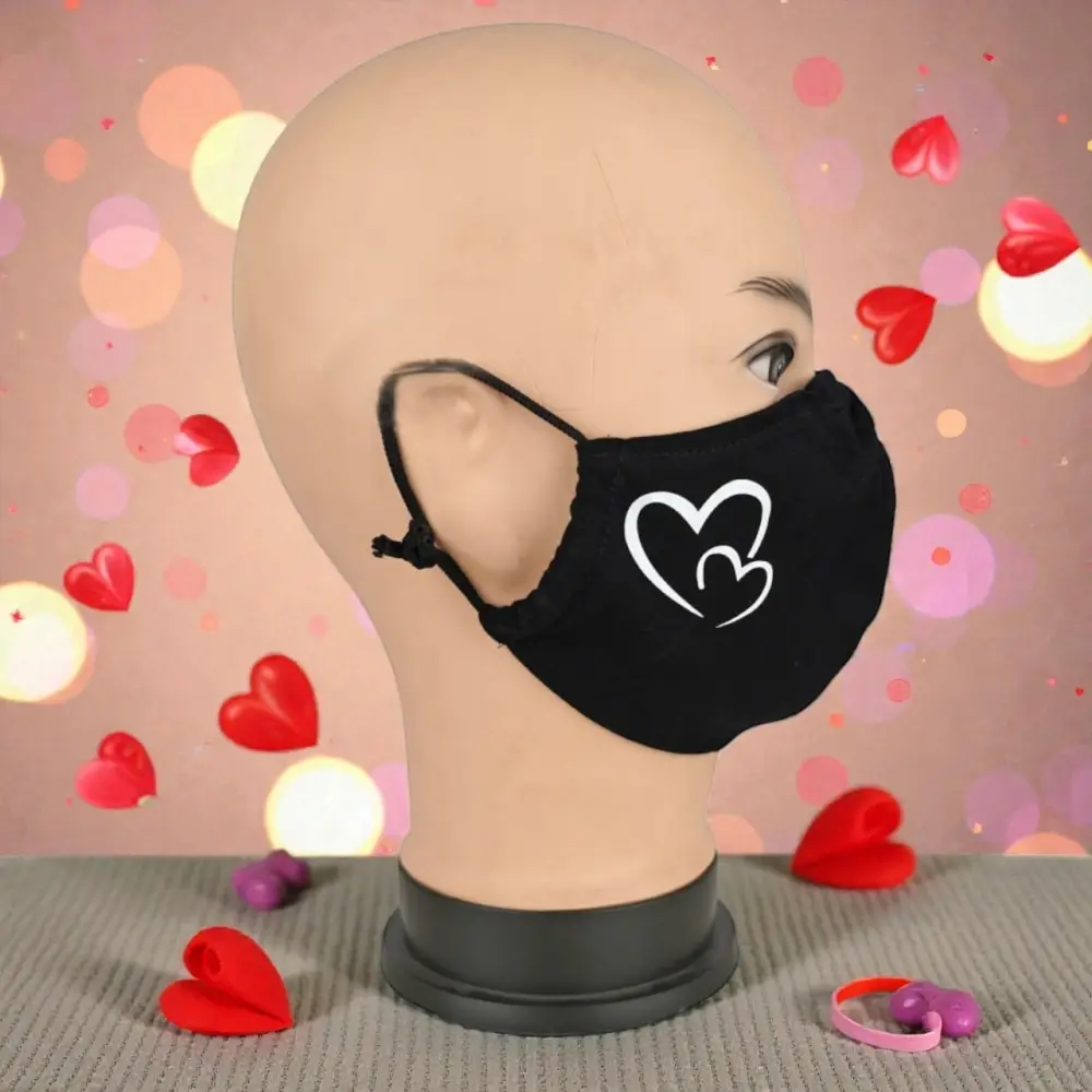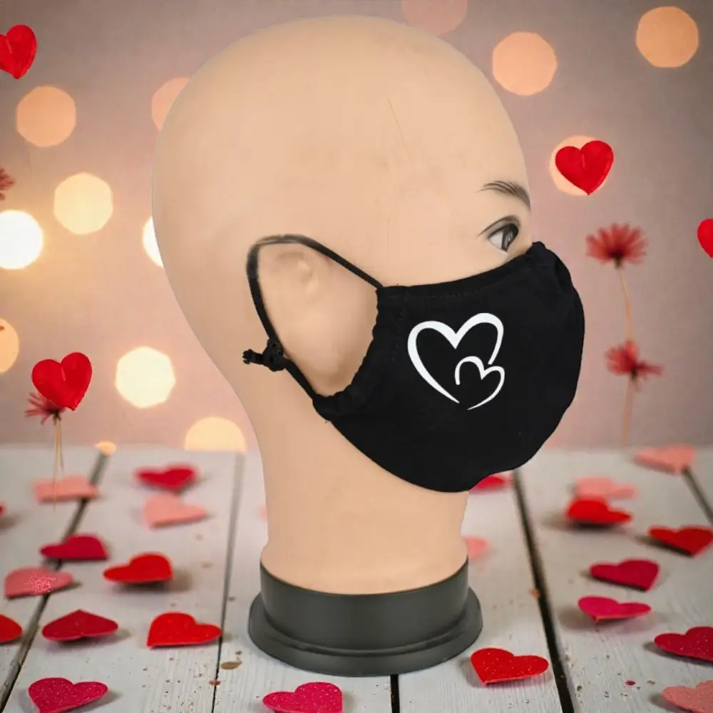 Маска многоразовая двухслойная лого сердечки (ткань,100% х/б)