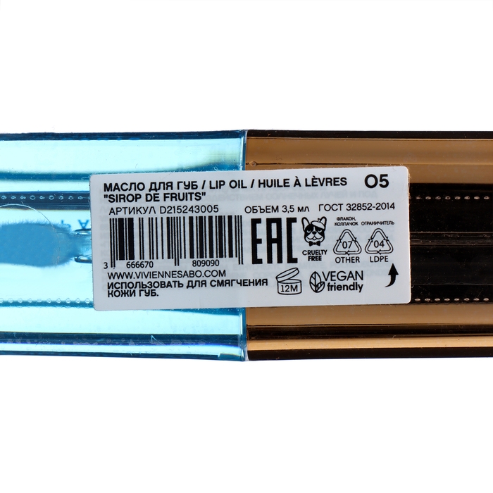 Масло для губ Vivienne Sabo Sirop de Fruits, тон 05 полупрозрачный синий, аромат ягод