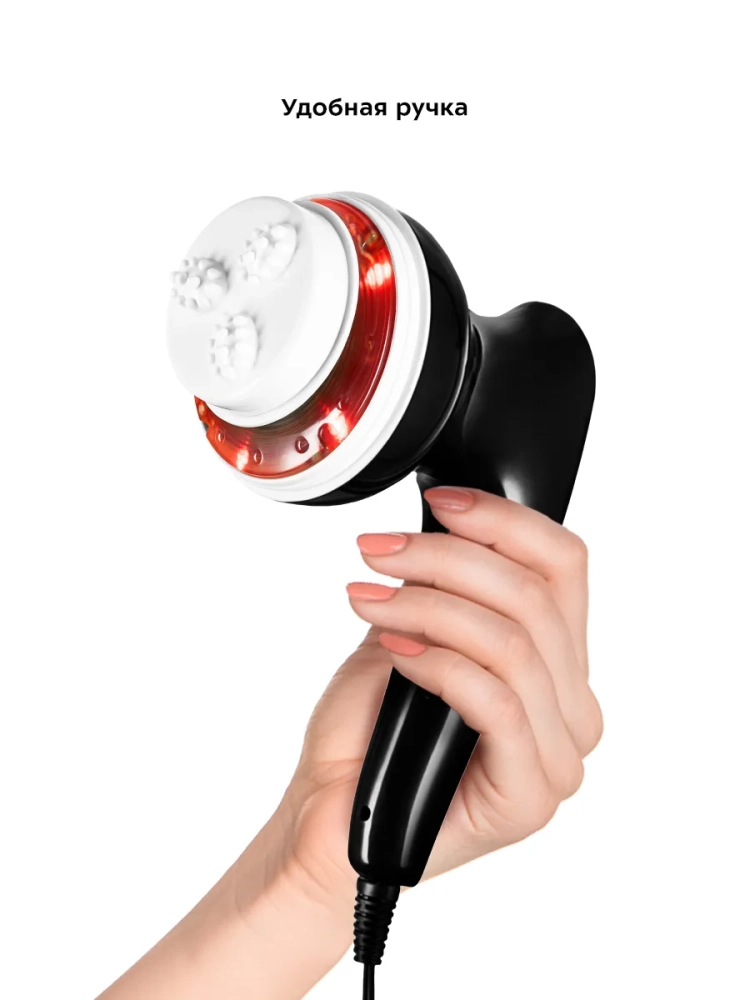 Насадки легко отсоединяются и очищаются, поэтому для улучшения эффекта от массажа процедуру можно проводить с использованием антицеллюлитных кремов и лосьонов, а также массажных масел. Функция инфракрасного нагрева усиливает эффект от проведения массажа и повышает эффективность косметических средств, используемых во время массажа. Регулировка интенсивности массажа позволяет подобрать наиболее комфортную скорость вращения насадки.