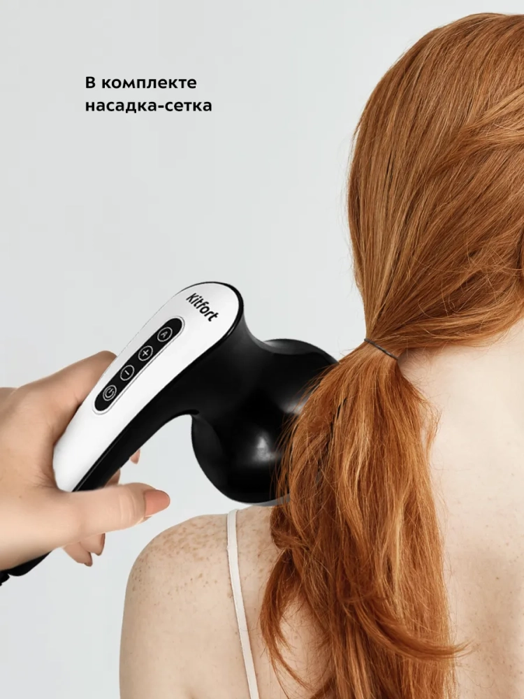 Прибор предназначен для проведения ротационного массажа различных частей тела. Четыре съемные насадки обеспечивают универсальность использования устройства — можно проработать проблемные зоны лица, шеи, рук, плеч, живота, икроножных мышц, бедер и спины. В комплекте есть насадка-сетка, которая надевается на основную насадку, чтобы волосы не попали во вращающийся части устройства во время массажа шеи.